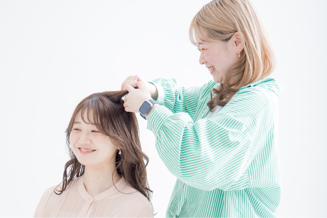 スタイリストとして施術に関わるメイン業務を主に行っています。私が思う仕事で大切なことは、プライベートとやりがいのバランスだと思います。どちらかに偏っていてもバランスを崩してしまうと思います。自分の成長を感じられる環境と、しっかり休養する事で精神的にも充実しているので、自分の目標である指名売上100万に向かってチャレンジ中です。